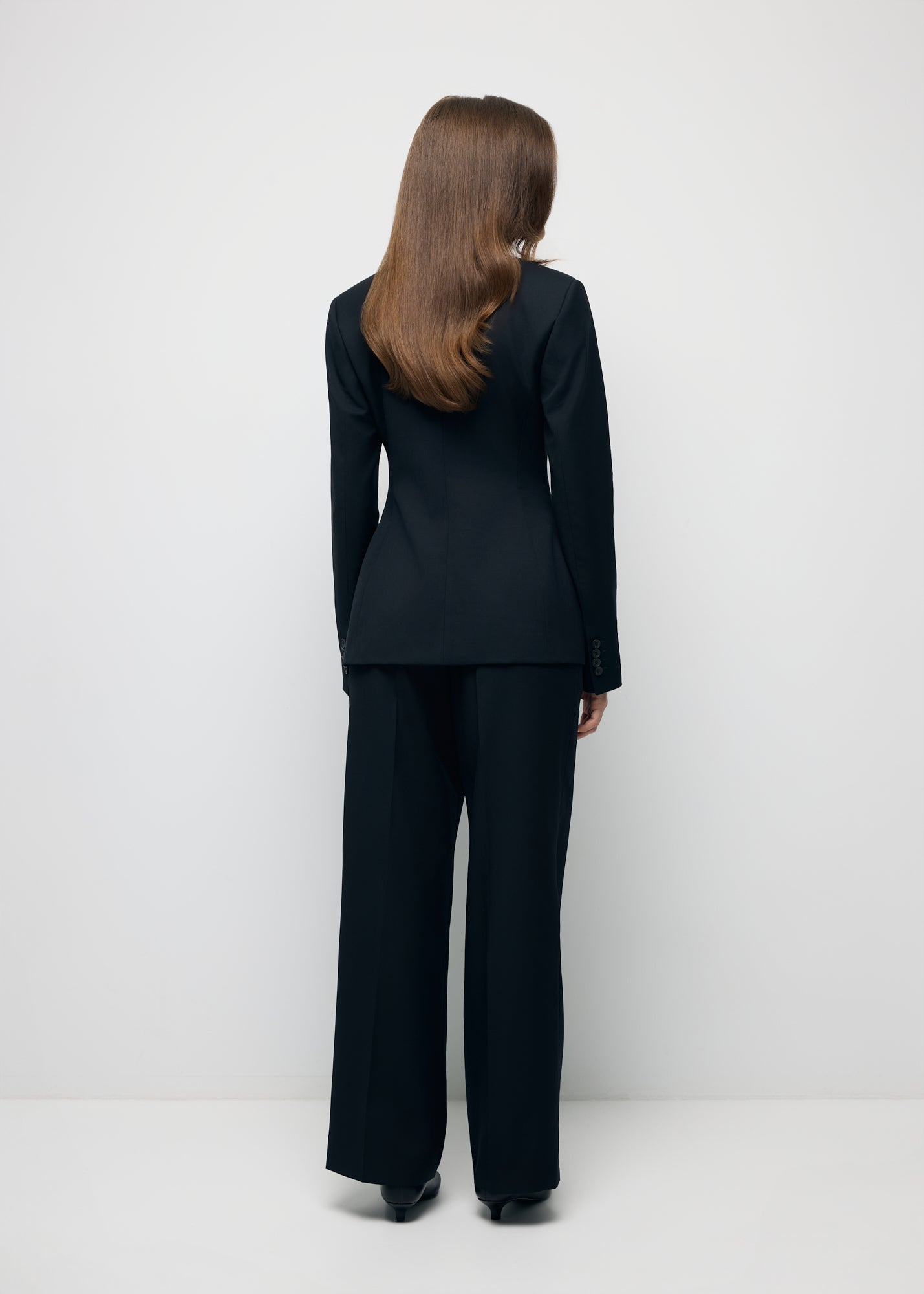 Lea is a black, tailored premium blazer made from 100% wool, a piece that immediately impresses with its quality and simplicity. It has a clean, minimalist line and beautifully accentuates the waist - feminine, but without exaggeration. It’s exactly the kind of blazer you search for for years: perfectly cut, versatile, yet distinctive.